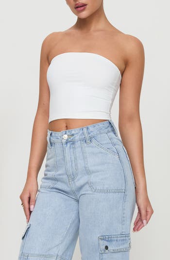 Smooth and versatile for wearing layered or on its own, this stretchy curve-hugging top is cut in a cropped shoulder-showing silhouette.