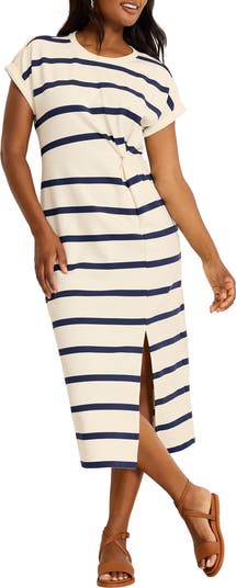 Nautical stripes enliven this soft stretch-kissed midi made with a front twist to shape the silhouette. An airy front slit enhances the easy movement of this everyday look.