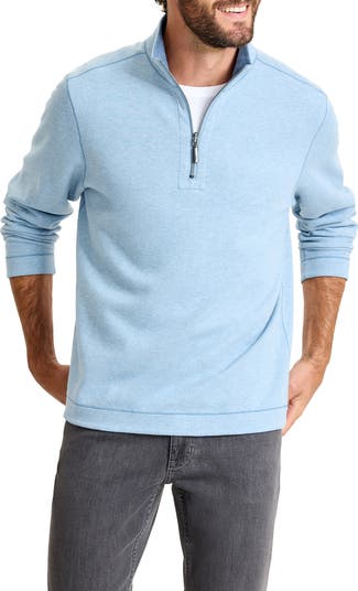Contrasting colors double your wearing options in a reversible pullover sporting a tall collar for extending your coverage and a short zipper for adjusting the fit. Made of soft cotton and recycled fibers, it's the perfect go-to for layering when the temperatures drop.