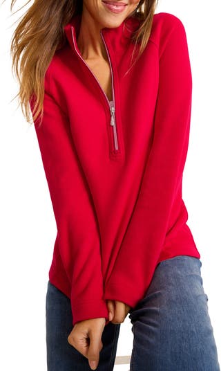 Sporty raglan sleeves frame this finely ribbed pullover designed with an easy half-zip closure.