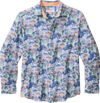 Perfectly puckered seersucker made of cotton and silky lyocell brings sunny comfort to a shirt that's covered in tropical flora and designed to look great whether it's tucked or untucked.
