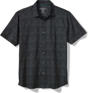 A sweat-wicking, quick-drying knit made of cotton and recycled fibers keeps you all-day comfortable in a camp shirt designed with jacquard patterns inspired by sunny getaways. Stretchy and wrinkle-resistant, it helps you stay relaxed and looking smart from an afternoon at the beach to an alfresco dinner under the stars.
