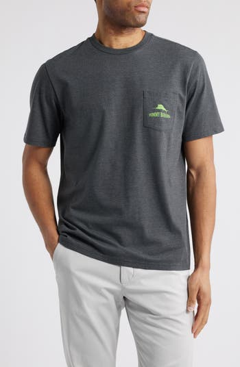 A whimsical canine graphic covers the back of a heathery cotton blend T-shirt that's finished with a chest pocket to hold dog treats, of course.