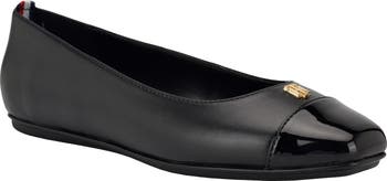 Signature logo hardware and a squared-off cap toe add visual intrigue to a poised flat set on a cushioned footbed for comfortable wear.