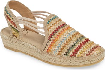 A cushy insole extends the everyday comfort of a breezy espadrille flat featuring a slingback strap and elasticized cords to perfect the fit.