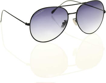 Classic unisex aviator with dark gray gradient lenses on black tinted frames