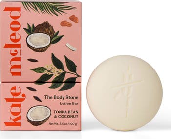 What it does: The Body Stone is a highly efficacious cocoa butter concentrate packed with fatty acids to deeply moisturize dry skin. This ultrarich bar glides on like silk, absorbs quickly and leaves behind a soft, radiant glowno greasy residue. While traditional lotions are more than 90% water, the Body Stone is made with 100% plant-based ingredients: pure cocoa butter and four nourishing body oils. No water, no fillers, no syntheticsjust pure, concentrated hydration. Kate Mcleod uses only essential oils to create light, subtle scents with aromatherapeutic benefits for body and mind. Tonka Bean & Coconut blends golden tonka with velvety coconut for a scent that feels lush and grounding.