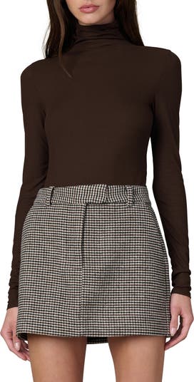 Stretchy yarns soften the rib stitches of this turtleneck top with a slim fit that layers well or looks great on its own.