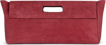 Leather construction softens the utilitarian style of this boxy clutch spacious enough to carry your everyday tools for business and pleasure.