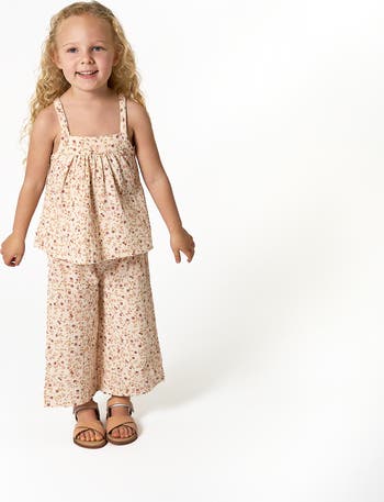 This trendy outfit is essential for those sunny days! Made from 100% cotton gauze, it’s designed to keep your little one feeling light and airy. The sleeveless top boasts cute ruffled details, while the wide-leg pants come with a comfort-stretch waistband for easy movement. For a fun and fashionable Mommy and Me look, pair it with your matching outfit to create the perfect look for any adventure! Our essentials have been independently certified with STANDARD 100 by OEKO-TEX® so that you don’t have to worry about harmful substances in your baby’s wardrobe. Pack includes one sleeveless top and matching pants.