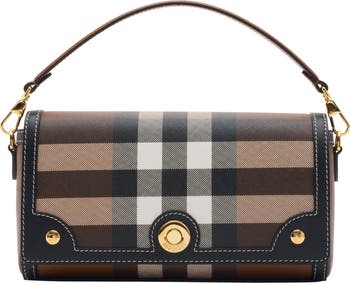 An archive-inspired crossbody bag made in Italy from a coated cotton blend printed with the Burberry Check and lined in a solid colour. The design is trimmed with smooth calf leather and has a logo-engraved closure. Carry across the body or wear on the shoulder using the detachable strap.||Detachable leather top handle|Detachable, adjustable crossbody strap|Foldover top with magnetic closure|Interior slip pocket|Hand-painted edges|Polished metal hardware|Cotton blend lining|Comes with a dust bag