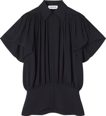 The rounded volumes of this top create a feminine and elegant silhouette. The silk Georgette lends an aura of sensual movement. This sumptuous fabric also adds depth to the piece, making it ideal for evening wear.