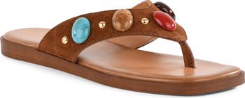Gleaming studs and colorful stones dial up the boho-chic style of this weekend-staple flip-flop.
