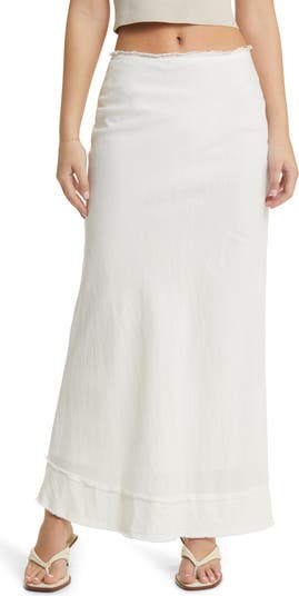 A lightweight linen-and-cotton maxi skirt featuring raw seams is the perfect way to elevate your warm-weather wardrobe.