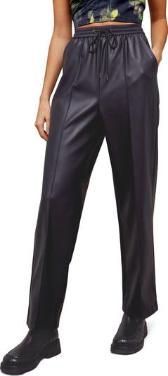 A mash-up of styles brings casual cool to drawstring pants, lined with a pintuck pleat and cut from faux leather that's as buttery soft as the real deal.