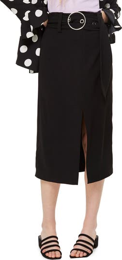 Wear it to work (then for after-hours drinks)—this versatile midi boasts a gleaming waist buckle and daring front slit for sweet and sophisticated charm.