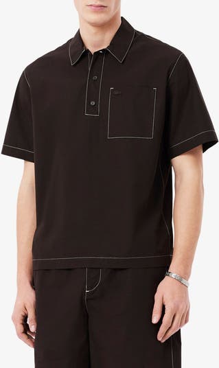 The signature croc authenticates a woven shirt traced with topstitching and topped with a smart collar.
