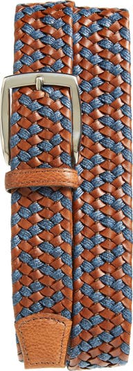 A charming weave of Italian calfskin and linen defines a casual belt with versatile appeal.