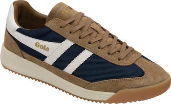 Serrated leather stripes and contrast suede accents lend sporty style to a casual mesh sneaker that's ready to hit the road from park strolls to weekend hangouts.