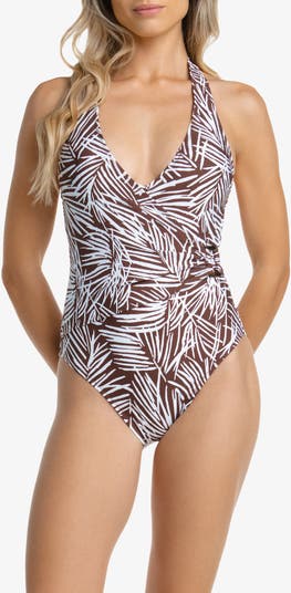 Make a vacation statement in this glamorous one-piece swimsuit. The ultra-flattering wrap overlay has our signature shell hardware buckle for a beautiful and comfortable fit.