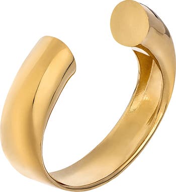 This luxe handmade cuff gleams in a rich golden finish and is meant to be worn with the opening on the top of the wrist.