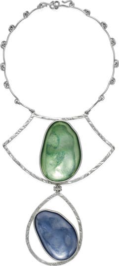 Make a statement with this artistically designed necklace that will bring instant color and dimension to your neckline.