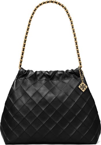 Signature logo hardware and diamond-quilted leather distinguish a spacious hobo bag perfect for storing your daily essentials while on the go.