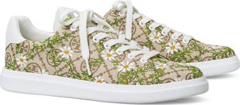 A retro court sneaker plays to win with a streamlined profile and Tory's dimensional Miller medallion popping at the heel.