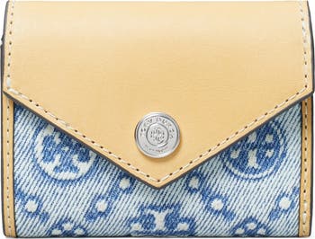 Logo-monogrammed denim and supple leather create textural interplay on a compact wallet designed with an array of pockets perfect for storing your cards, cash and coins.