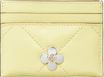 A hardware-accented clover medallion stands out against the diamond-quilted leather of a slim card case perfect for storing your financial essentials while on to go.