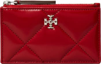 Diamond quilting adds understated texture to a sleek leather card case embellished with signature hardware.