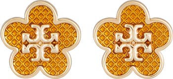 Flower stud earrings centered by iconic logo medallions and textured enamel bring a pretty pop of color to any look.