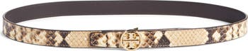 Snakeskin-inspired detailing adds wild texture to this slim leather belt.