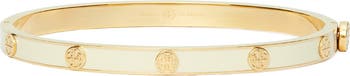 Stainless-steel double-T studs add shimmering punctuation to this slender enamel-flooded hinge bracelet.