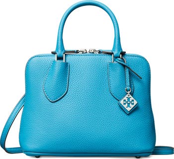 Gleaming hardware and richly textured leather distinguish a scaled-down swing bag fitted with multiple straps for styling versatility.