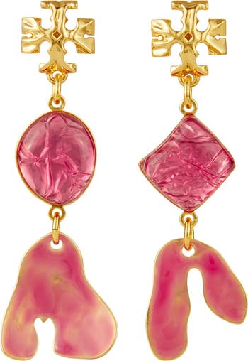 Bring an elegant gleam to any look with these eclectic drop earrings featuring organically shaped charms that subtly catch the light.