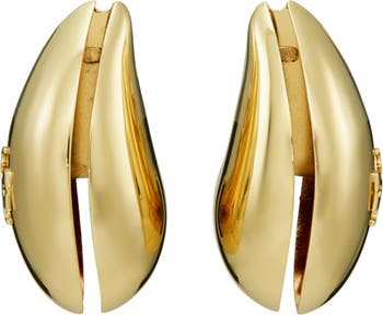 Grooved wave clip-on earrings offer sophisticated shine with an embossed logo and highly polished finish.