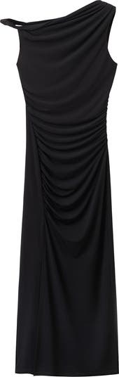 Rippled ruching enhances the texture and dimension of this figure-skimming stretch-kissed midi meant to show off your shoulder.