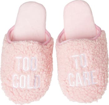 - These Too Cold To Care Fabric Slippers in Small/Medium size, made of soft pink polyester, are the perfect gift for holiday celebrations, weddings, or Mother's Day, offering both comfort and style.