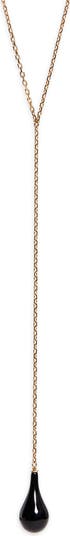 Seen frequently on the label's fall '25 runway, this elegant gold-plated Y-necklace features a glossy onyx teardrop suspended from a delicate chain.