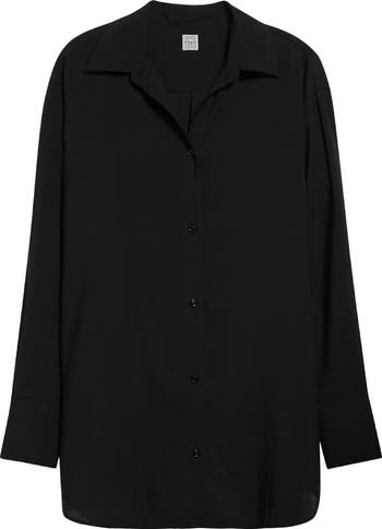 Relaxed Semisheer Wool Voile Button-Up Shirt