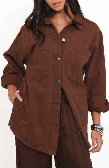 Made from sturdy cotton denim, this casual-cool shirt-jacket features an elongated, oversized fit for relaxed, easy layering through the seasons.