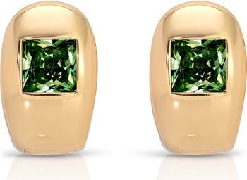 Inset cubic zirconia brings verdant color to these chunky hoop earrings that modernize the way you shine.