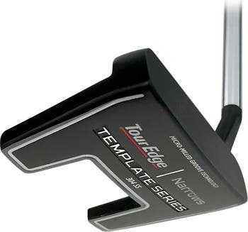 The Tour Edge Template Narrows Black Mens Putter (left-hand) is a winged mid-mallet that is tailor-made for left-handed putters who use a slight arc in their stroke. It features CNC-milled Micro-Groove Face Technology with grooves 20 percent deeper and wider than past versions, creating immediate topspin and minimizing skidding off the face. Crafted from soft 304 stainless steel and finished in a sleek matte black PVD, it delivers premium feel and feedback at impact. The slant-neck hosel and mid-toe hang help square the face through an arcing motion, while the high-contrast white-on-black alignment aid makes it easier to aim precisely. A Lamkin Deep-Etched Pistol grip adds traction and comfort — stylish performance designed to tame the greens.