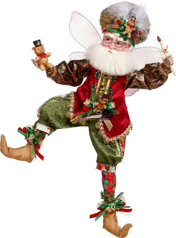 The Mark Roberts Toymaker Fairy is a whimsical collectible dressed in richly detailed artisan attire, celebrating the magic of making toys by hand. He holds a delicate paintbrush, as if adding the finishing touches to a beloved creation, and a tiny bear rests on his hand for an extra dose of charm. With intricate fabrics, expressive features, and storybook personality, this fairy brings a warm, workshop wonder to any holiday or fantasy display.