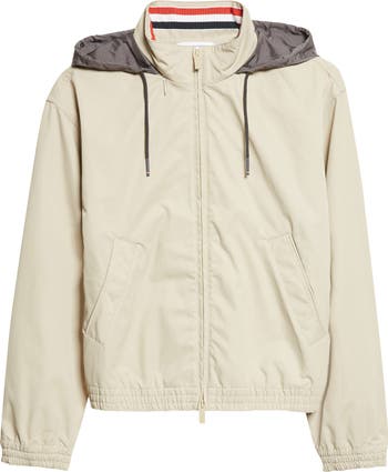 The label's preppy polish perfectly merges with the sporty vibe of this traditional track jacket reimagined with a shower-shielding hood made from heavy-duty ripstop. Vivid RWB stripes spanning the interior collar put a house-signature finish on the look.