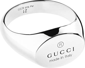 Revived '90s brand styling is expertly engraved atop this signet ring crafted in Italy from mirror-polished sterling silver.