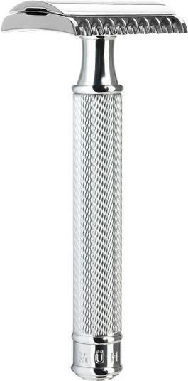 Long lasting and corrosion-resistant, the MÜHLE R41 chrome choice finish provides incomparable quality and longevity. A premium product that produces a distinctly close and lasting shave. Unlike modern blade systems, the R41 foregoes plastic mechanisms. Growing concern in the effects of disposable plastic makes the R41 a great choice for the environmentally conscious, reducing both plastic waste and unwelcome environmental impacts, without compromising on precision. The safety razor with open tooth comb was developed specifically for experienced wet shavers, allowing for a vigorous, direct shaving technique. The blade is less likely to become clogged by stubble and residues so is generally preferred by men with denser, stronger beard growth. Blades are easily replaced by unscrewing the head of the Safety Razor. Replacement blades can be purchased from us, we recommend the rust-proof MÜHLE razor blades, a perfect match for this timeless razor. Measurements Dimension: 41 mm x 94 mm Weight: 64 g