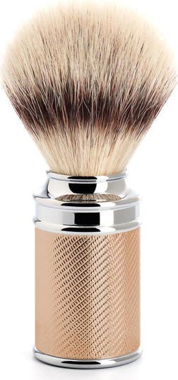 The iconic MÜHLE Traditional Range is a minor marvel of precision, ergonomics and beauty; where classic design meets radiant quality. An opulent twist on a timeless classic, a rose gold chrome finish adds a touch of luxury to the traditional MÜHLE shaving brush. Long lasting and corrosion-resistant, the MÜHLE 31M89RG chrome-plated finish still provides incomparable quality and longevity. Silvertip FiberA premium hair grade, this synthetic brush consists of seven different types of Fiber, varying in thickness and length. This variation allows for a brush head that, without compromising on backbone, is uniquely soft and easy to manage.Processed by hand, the Silvertip Fiber was created to provide a completely vegan, and lower maintenance product that would emulate all the benefits of a premium natural hair brush head. Easy to care for and easy to use, the Silvertip Fiber brush still produces a thick and creamy lather from small amounts of shaving soap and cream. Unlike natural hair, however, the Silvertip Fiber brush is somewhat more stable and resistant to daily wear. A little more forgiving in its maintenance, the Silvertip Fiber brush dries quickly and is more resistant to shaving soaps and creams. Durable but suitable for even the most sensitive of skin types, Silvertip Fiber is uniquely soft at its fine tips, guaranteeing a gentle and pleasant experience, without compromising on the desired backbone of a quality brush head. Replacement brush heads are available from MÜHLE here. MeasurementsRing Size M: 21mm Dimensions: 31 mm x 100 mm Weight: 130 g