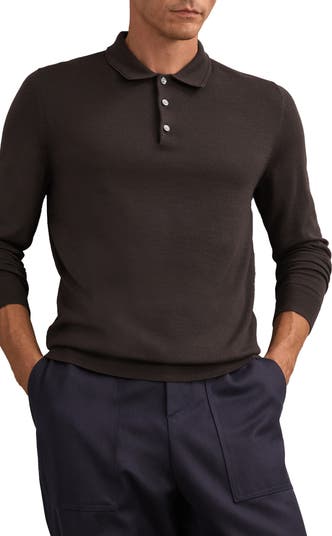 Reiss Trafford Long Sleeve Wool Polo Sweater, Main, color, Chocolate Brown